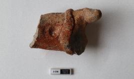 | Description / विवरण | Fragment of animal figurine. Applique design is shown near the back leg. Red slip found over the body |