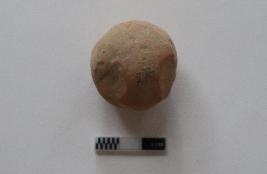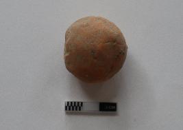 | Description / विवरण | Sling ball of spherical shape. Some portion is partially damaged. It is red in colour |