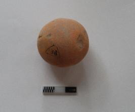 | Description / विवरण | Sling ball spherical in shape. Some portion is partially damaged. It is dull red in colour |
