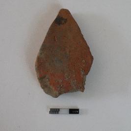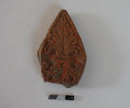 | Description / विवरण | Chevron shaped terracotta object having floral motif on the obverse. the reverse is plain. One end is damaged. |