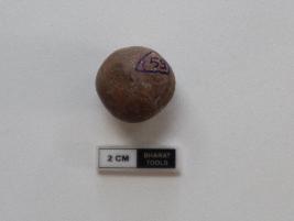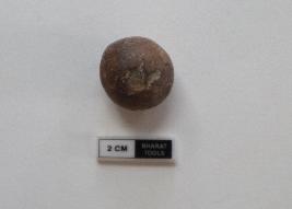 | Description / विवरण | Sling ball spherical in shape. Some portion is damaged. It is dull red in colour |