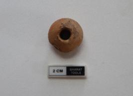 | Description / विवरण | Bead of Ghat shaped. Some portion is partially damaged. It is red in colour |