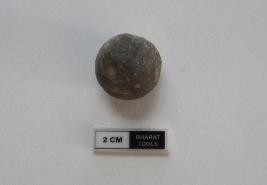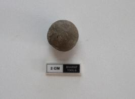 | Description / विवरण | Sling ball of spherical shape. Some portion is damaged. It is dull red in colour |
