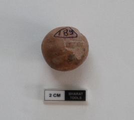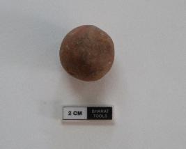 | Description / विवरण | Sling ball of spherical shape. Some portion is damaged. It is red in colour |