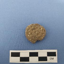 | Description / विवरण | The circular terracotta bead has impressed dotted design on one side. The perforation is on its side. |