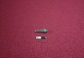 | Description / विवरण | A handmade terracotta stopper made with fine clay having broken tip and rounded base. The surface of the object is smooth and black in colour. |