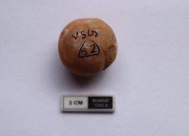 | Description / विवरण | Sling ball of spherical shape. It is red in colour. Some portion is partially damaged |