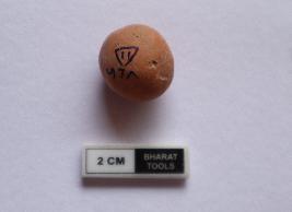 | Description / विवरण | Sling ball of spherical shape. It is red in colour. Some portion is partially damaged |