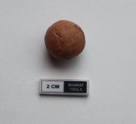| Description / विवरण | Sling ball spherical in shape. Some portion is damaged. It is red in colour |