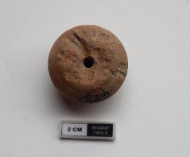 | Description / विवरण | Arecanut shaped bead. It is red in colour and partially damaged |