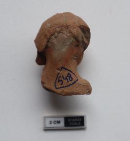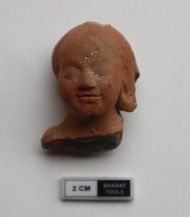 | Description / विवरण | Human head, right ear and below the neck portion are missing. It is red in colour. Eyes, nose and lips are clearly delineated. A beautiful smile is seen on the face. |