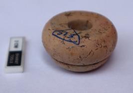 | Description / विवरण | Bead of ghat shape. Lower portion is flat. It is dull red in colour |