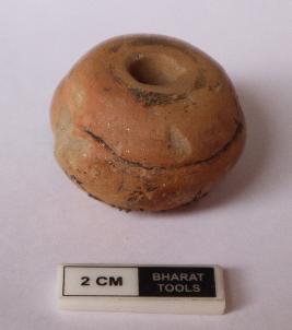 | Description / विवरण | Ghat shaped bead. It is red in colour and edge is damaged. |