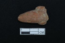 | Description / विवरण | It is a terracotta figurine of an animal. It is well fired. It is the head part. Incisions and applique decorations are used to show facial features. Applique ears or horns are visible on both the sides. There are two small incision marks to indicate nostrils or eyes. |