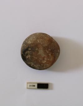 | Description / विवरण | Arecanut shaped bead; one end portion is damaged and colour of this bead is black |