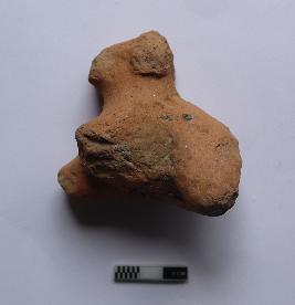| Description / विवरण | Animal figurine having eroded and mutilated face. One leg of front and back are missing. There are many circlets over the body. It is red in colour |