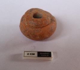 | Description / विवरण | Ghat shaped bead. It is red in colour and some portion are damaged |