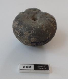 | Description / विवरण | Arecanut shaped bead. It is black in colour and partially damaged |