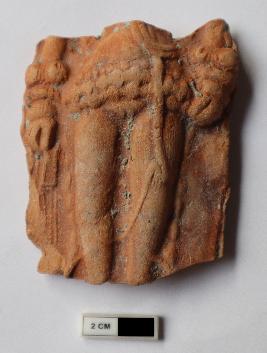 | Description / विवरण | Fragmentary piece of a plaque depicting a standing female figure. She is adorned with heavy bangles and thick beaded girdle. She wears a diaphanous drapery, the ends of which are discernible along the legs. the feet are missing. |