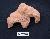 A defaced animal figurine of dull red fabric with a tail behind.Hand modelled.