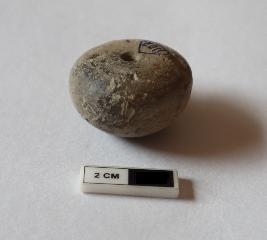 | Description / विवरण | Arecanut shape bead. It is in gray color and partially damaged |