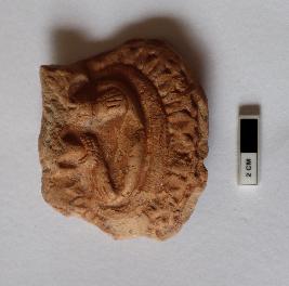 | Description / विवरण | Fragmentary piece of a moulded plaque. The extant part depicts the bejwelled feet on a floral pedestal. |