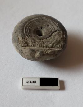 | Description / विवरण | Bead in arecanut shape. It is black in color and partially damaged. |