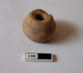 | Description / विवरण | Ghat shape bead. It is partially damaged and color of object is red |