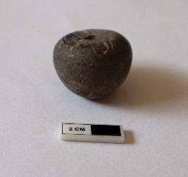 | Description / विवरण | Bead in arecanut shape. It is black in color and partially damaged |