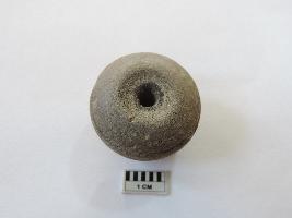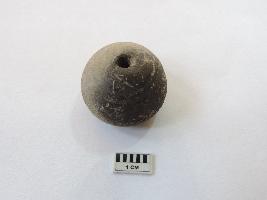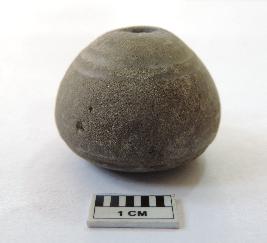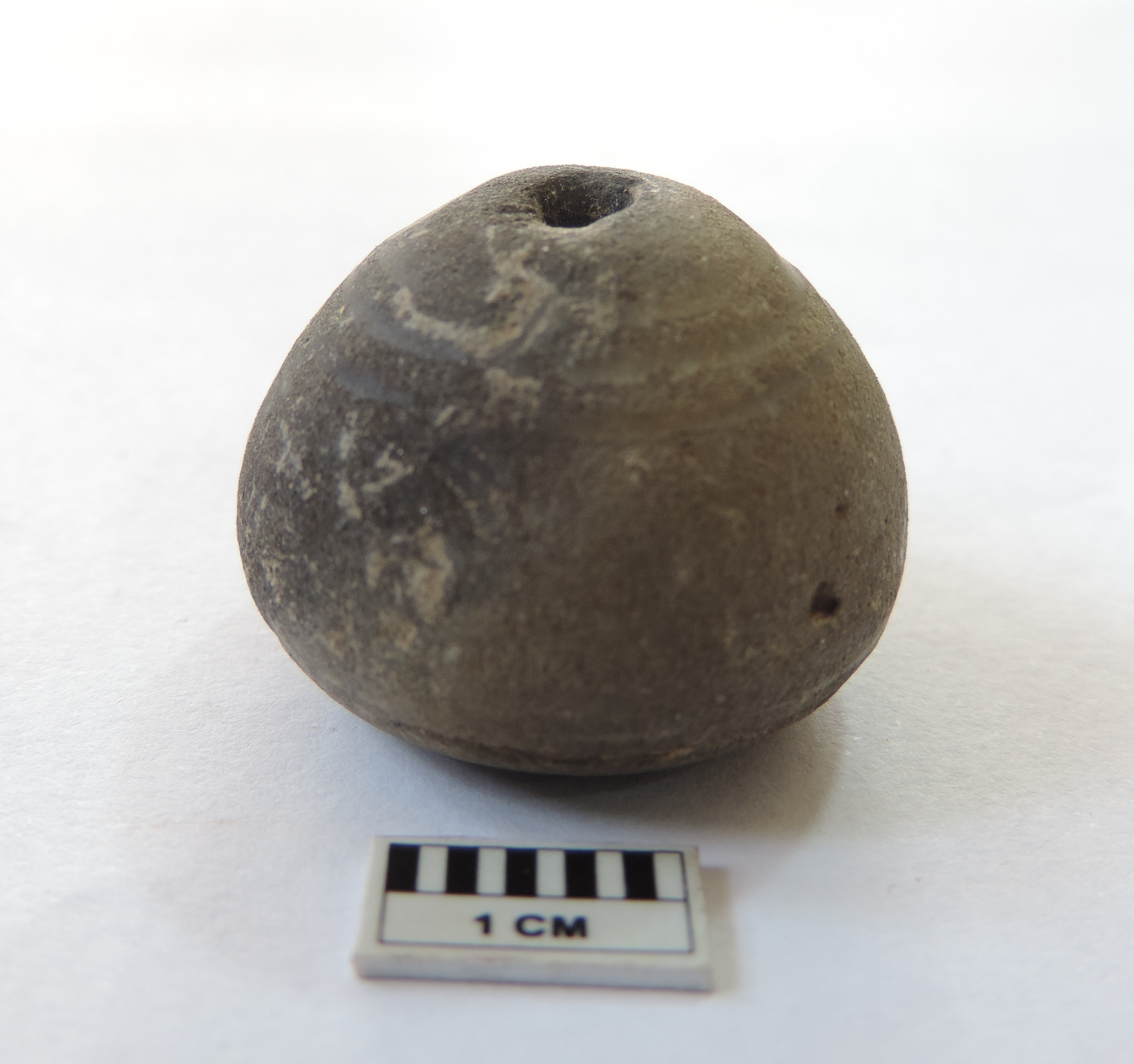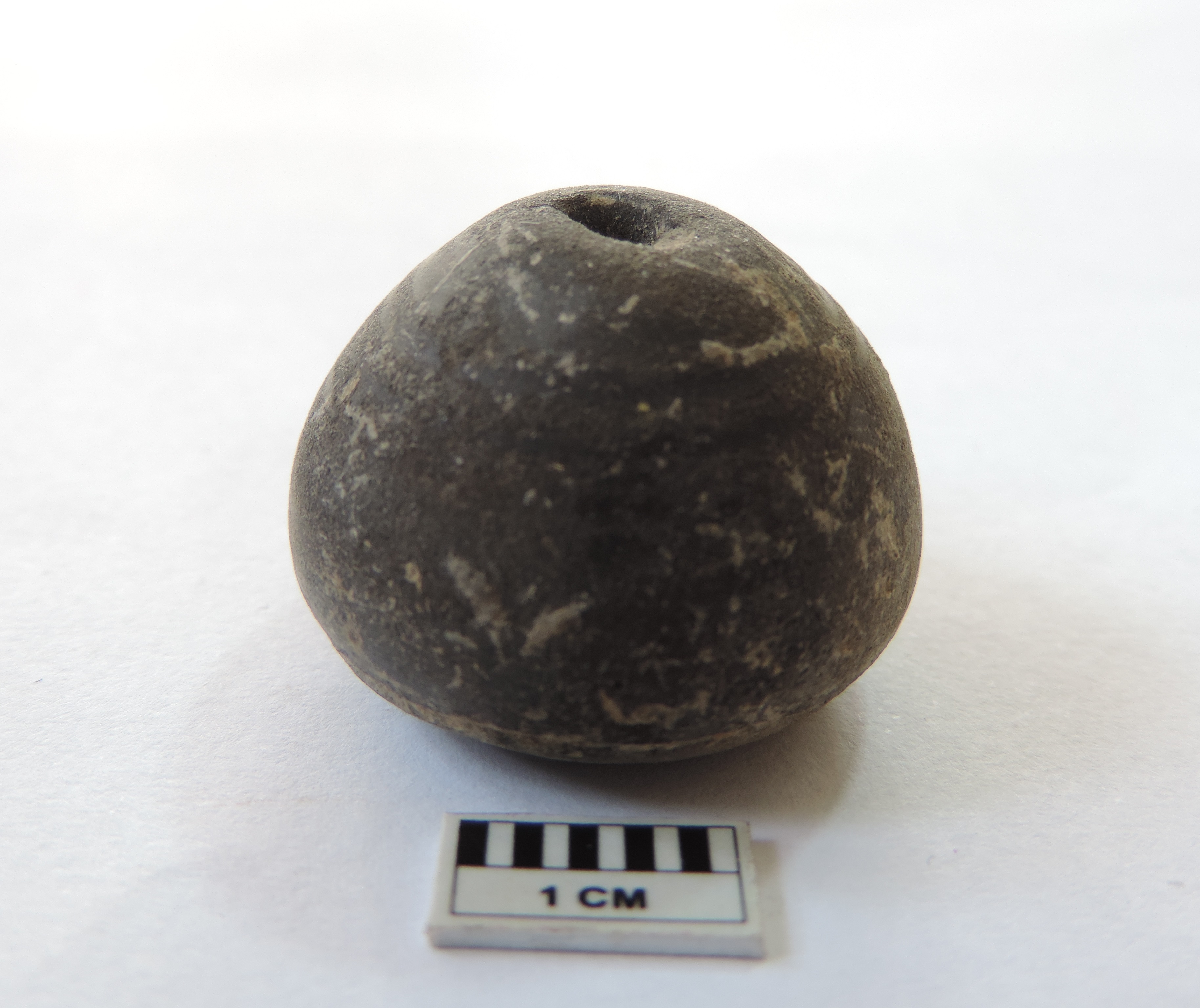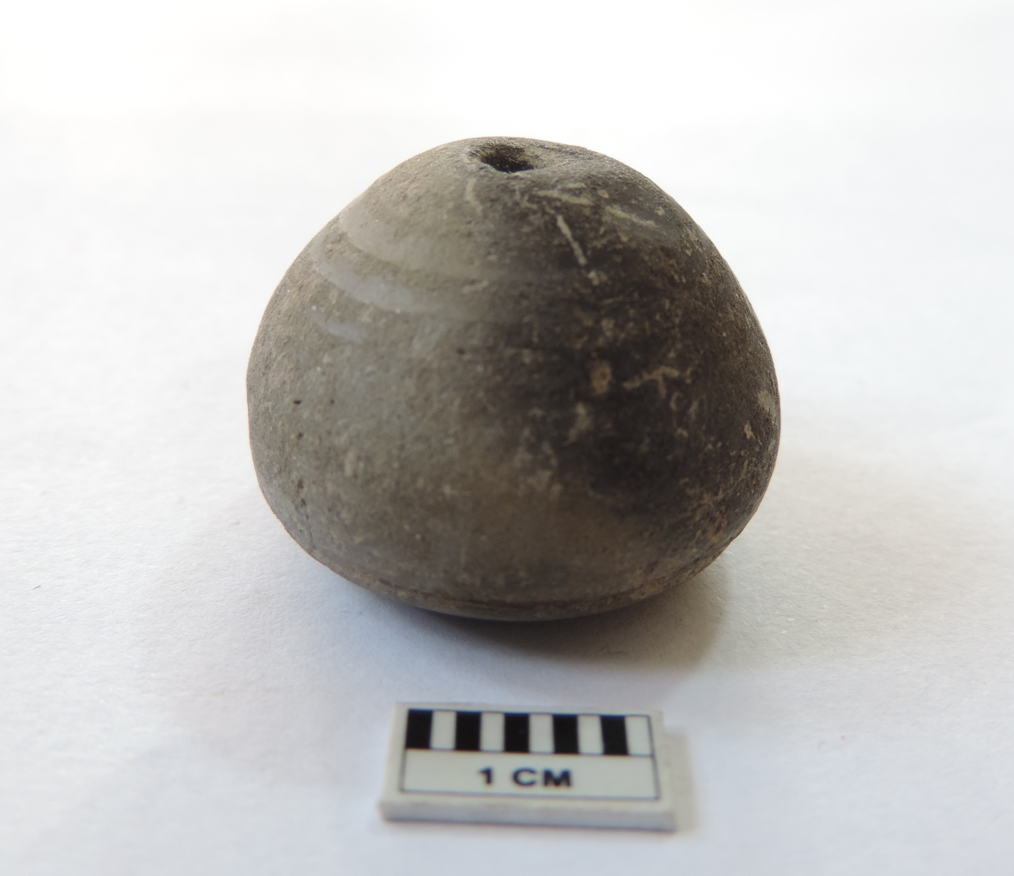 An areca nut-shaped bead with perforations on both ends, passing through it.