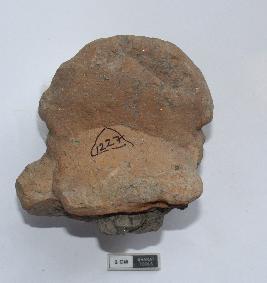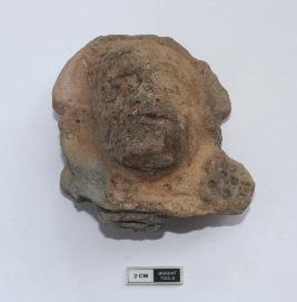 | Description / विवरण | Only the head of the figurine is extant. It is fashioned from a mould. The features are not very clear. The ear ornament on the left ear is notable. |