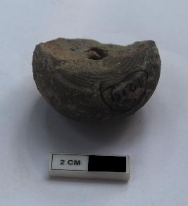 | Description / विवरण | Arecanut bead. It is grey in color and half portion is missing |