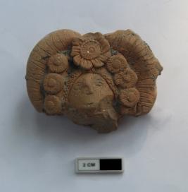 | Description / विवरण | Head portion of the terracotta human figurine. It is notable for the elaborate coiffure. Fashioned out of a mould |