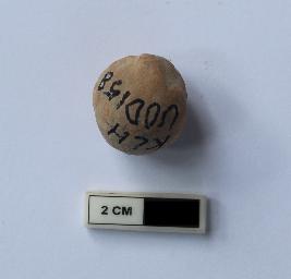 | Description / विवरण | A sling ball of spherical shape. It is red in color and partially damaged |
