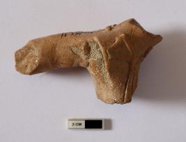 | Description / विवरण | A broken terracotta animal figurine having incised and applique decoration on the body. Legs and head are missing. It is red in color |