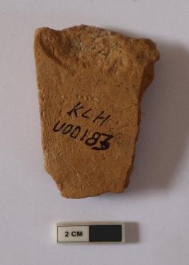 | Description / विवरण | Fragment of terracotta plaque depicting a kneeling devotee. The entire composition as revealed from similar other plaques shows Buddha standing in abhaya mudra with a kneeling devotee and an attendant holding a lonf parasol. |