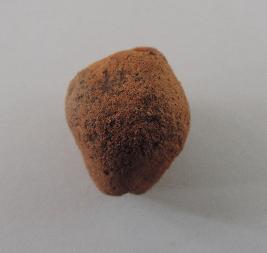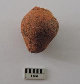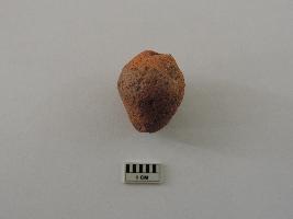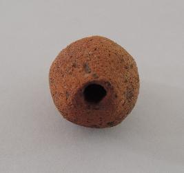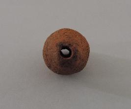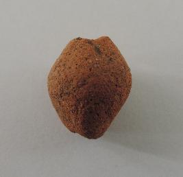 | Description / विवरण | A conch shaped terracotta bead with perforations on both ends passing through it. |