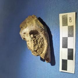 | Description / विवरण | The broken lump of clay has a broken imprint of an oblong seal. |