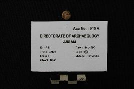 | Description / विवरण | This is a medium-grained globular shaped terracotta bead with a perforation at the center to facilitate stringing. It is made of Kaolin clay. |