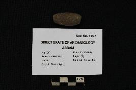 | Description / विवरण | This is a ellipsoid-shaped terracotta bead, the shape of which resembles to that of a Dholbiri or Assamese traditional drum-shaped pendant. It is medium grained and has scratches in the outer surface. |