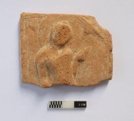 | Description / विवरण | Terracotta plaque depicting Buddha in standing posture, lower half portion is broken out. The left hand of Buddha is upward raised. Chhatra is depicted on the left side. Halo is represented in back side of Buddha. |