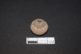 | Description / विवरण | It is a terracotta bead. It is an areca nut shaped bead. It is brownish in colour. It has a central perforation. The surface is rough. |