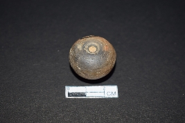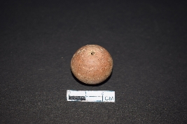 | Description / विवरण | It is a terracotta bead. It is an areca nut shaped bead. It is brown in colour. The bottom is black from one side and there are small black spots on the top. The surface is smooth. |