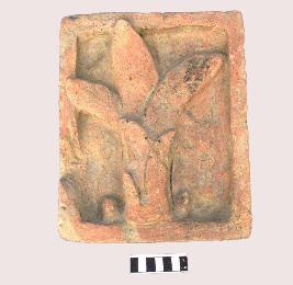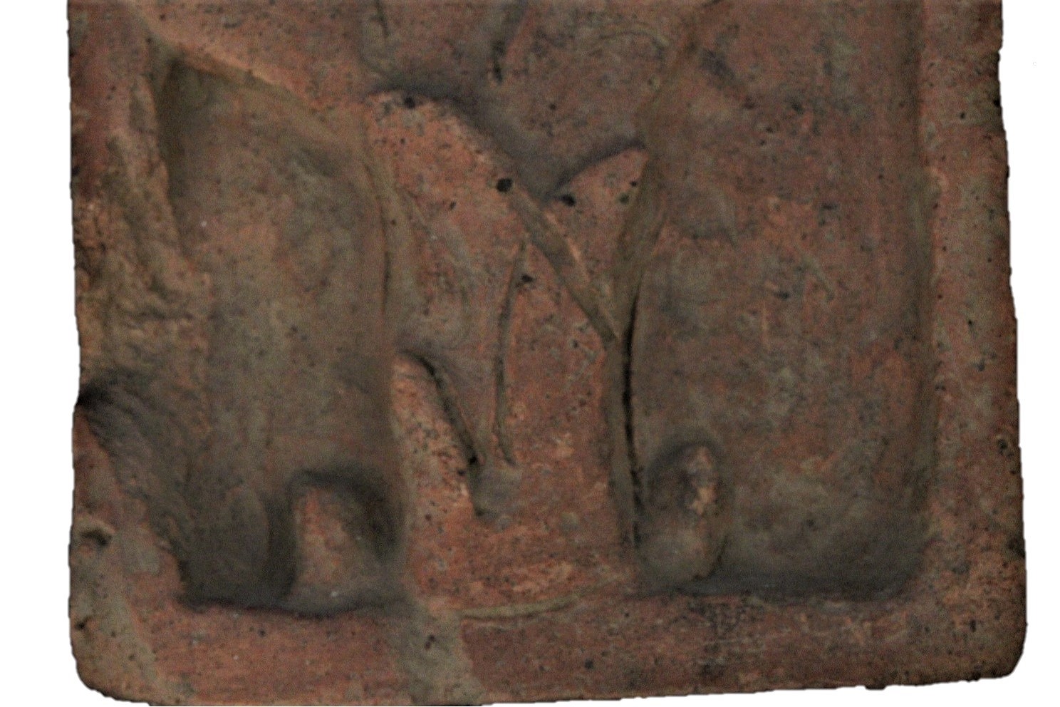 This terracotta plaque symbolises the banana plant which is considered as a very sacred and auspicious symbol. The plaque represents very prominent banana leaves with visible strokes in it, the trunk of the plant shows cut marks in it. Both the sides of the plant two banana saplings were depicted.
