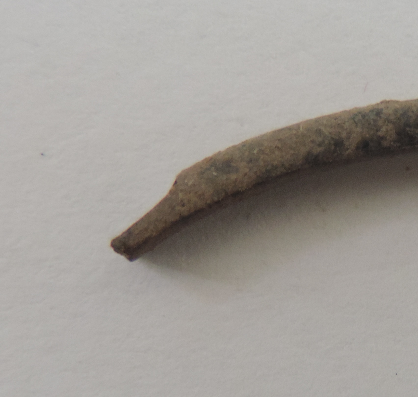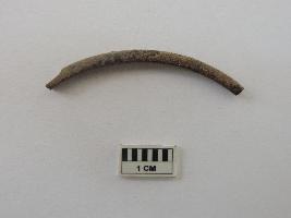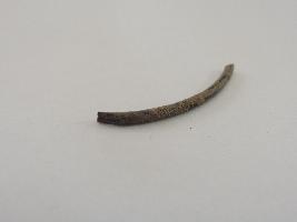 A dark-coloured bangle piece which is completely covered with dried soil.