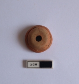 | Description / विवरण | A Ghat shape bead, it is red in color and partially damaged |