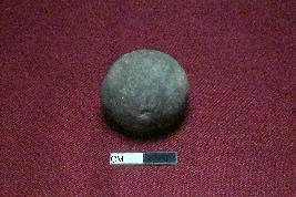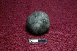| Description / विवरण | A terracotta sling ball, it is round in shape and smooth surface. The colour of the object is black. |
