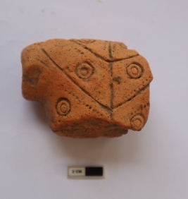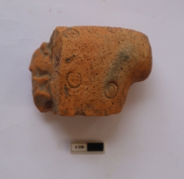 | Description / विवरण | A terracotta animal figurine. Front portion is missing. Decoration and stamp marks are visible on the body |
