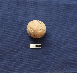 | Description / विवरण | A sling ball in a spherical shape. It is dull red in colour. |