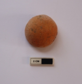 | Description / विवरण | A sling ball in a spherical shape. It is red in color |